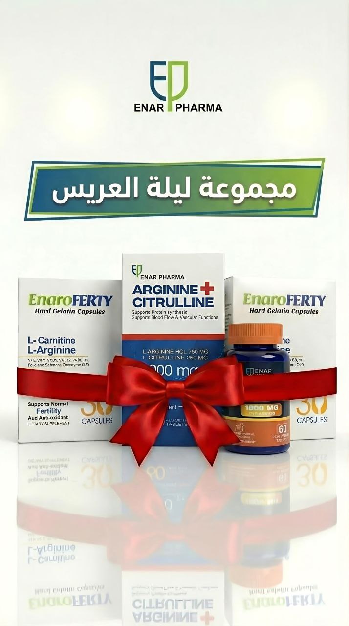 يشمل ذلك علبة واحدة من أرجينين سيترولين، وعلبة واحدة من تيستوسبير، وعلبتين من إيناروفيرت، وكل ذلك بسعر 1150 بدلاً من 1240.